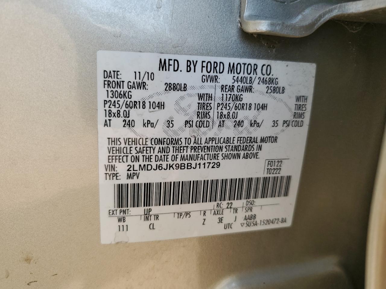 Колір ЗолотийЦиліндри 6VIN 2LMDJ6JK9BBJ11729Стан НевідомоУшкодження Задня