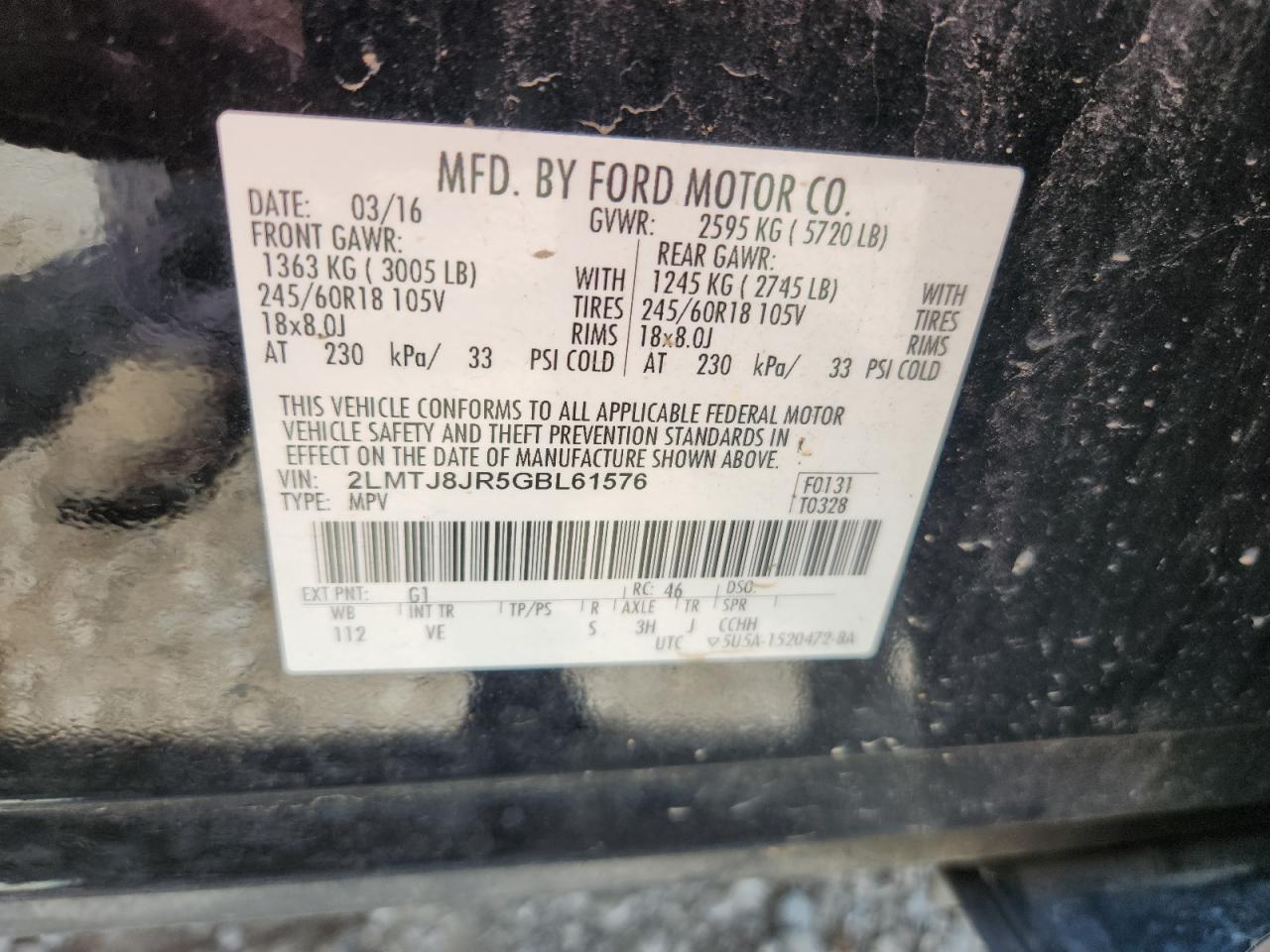 Колір ЧорнийЦиліндри 6Привід Повний привідVIN 2LMTJ8JR5GBL61576Стан Заводиться та їде (перевірено)Ушкодження Передня або задняДата аукціону 2025-11-06