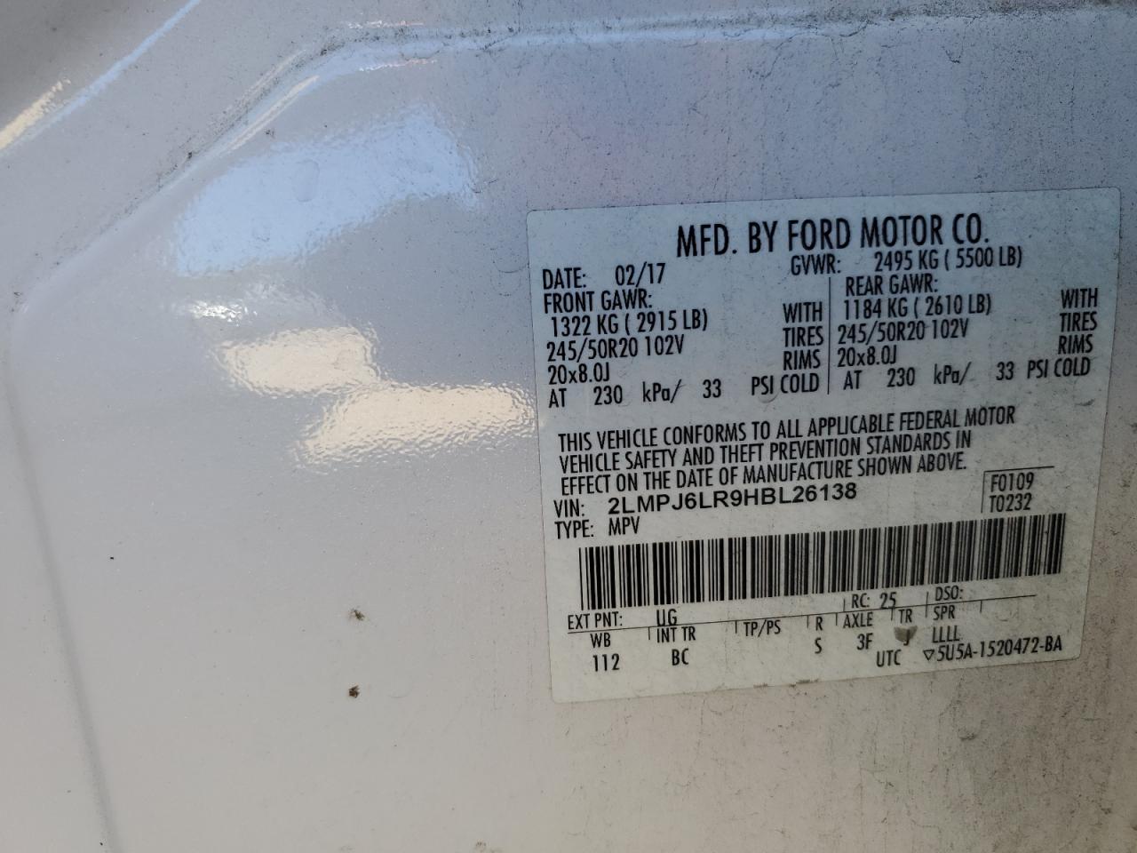 Колір БілийЦиліндри 6VIN 2LMPJ6LR9HBL26138Стан Заводиться та їде (перевірено)Ушкодження Передня або задняДата аукціону 2025-11-04