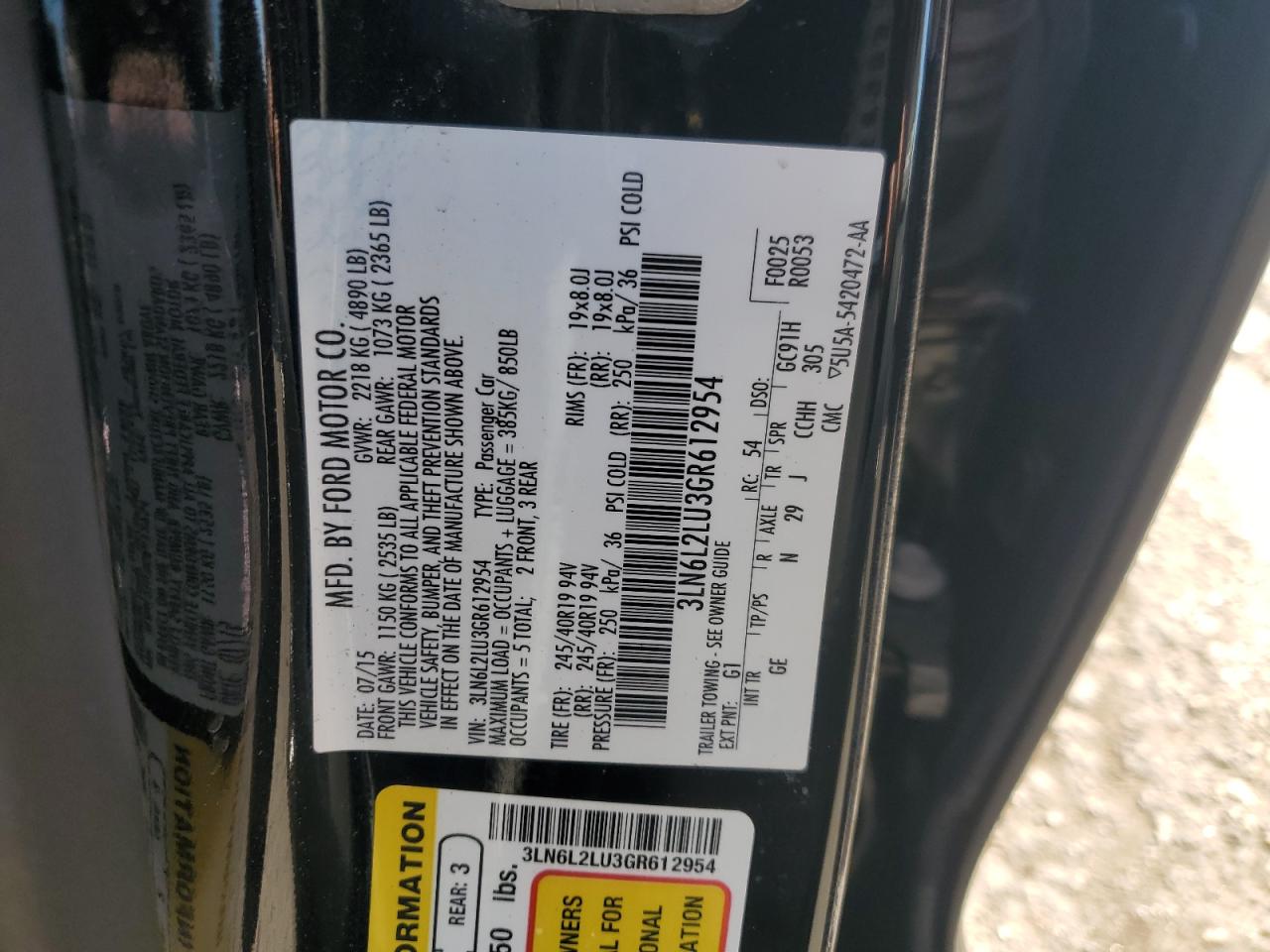 2016 LINCOLN MKZ BLACK LABEL