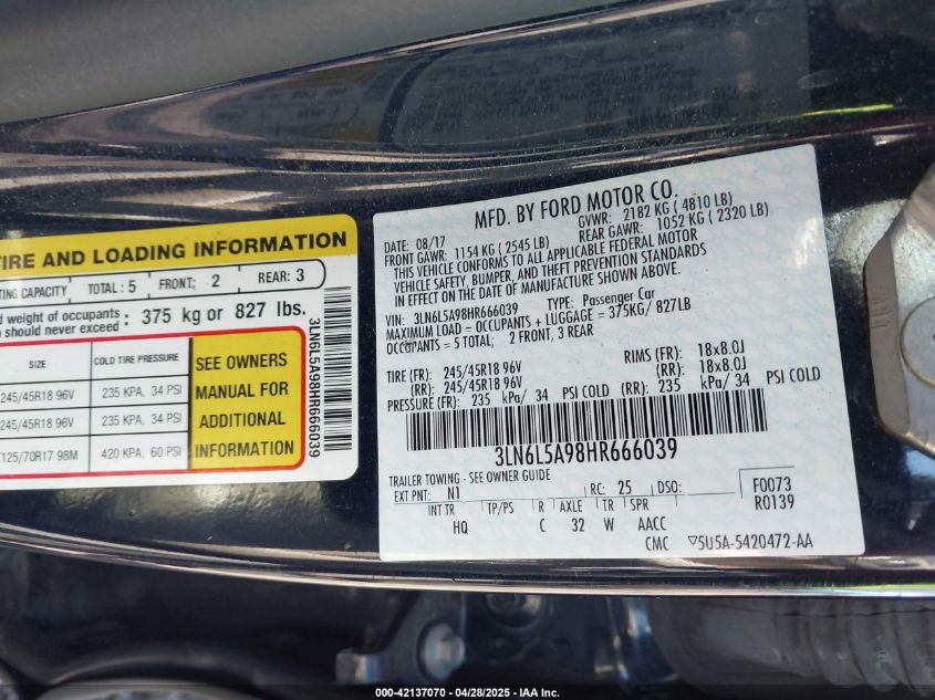 LINCOLN MKZ 2.0 2017 р.в., Передній привід (3LN6L5A98HR666039) з США