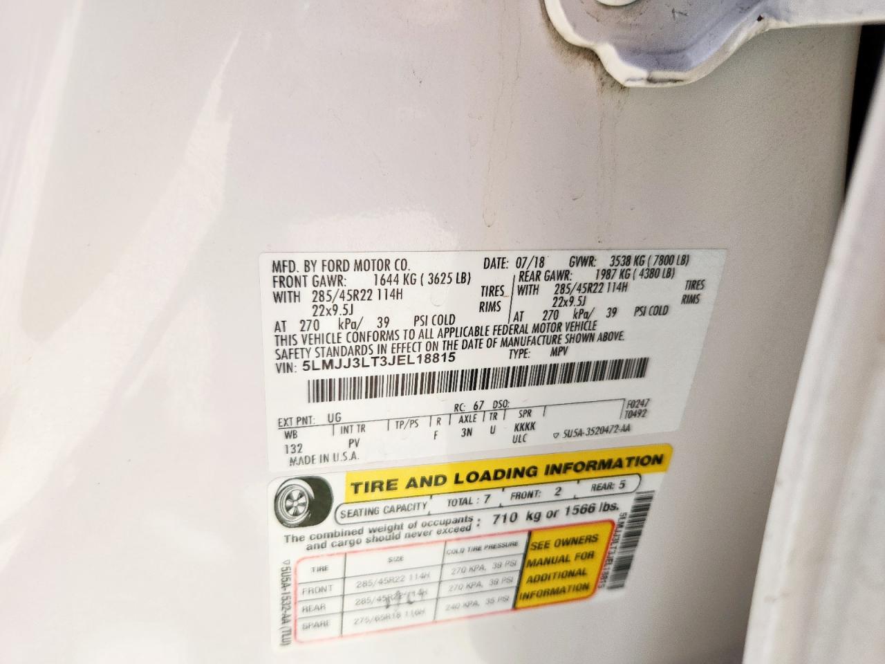 Колір БілийЦиліндри 6Привід 4x4 з заднім приводомVIN 5LMJJ3LT3JEL18815Стан Заводиться та їде (перевірено)Ушкодження Передня або задняДата аукціону 2025-11-06