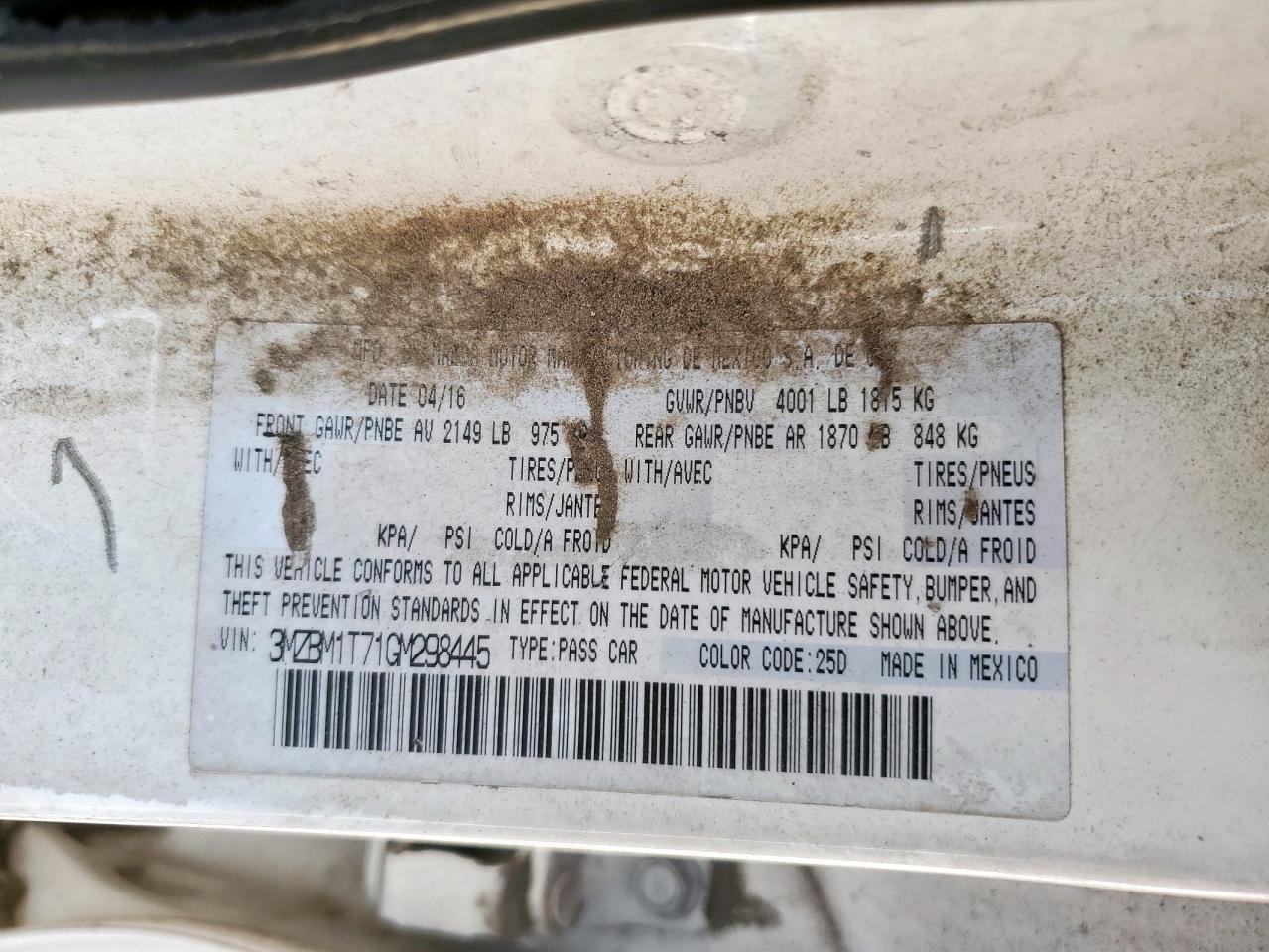 Колір БілийЦиліндри 4VIN 3MZBM1T71GM298445Стан НевідомоУшкодження Передня або задняДата аукціону 2025-11-03