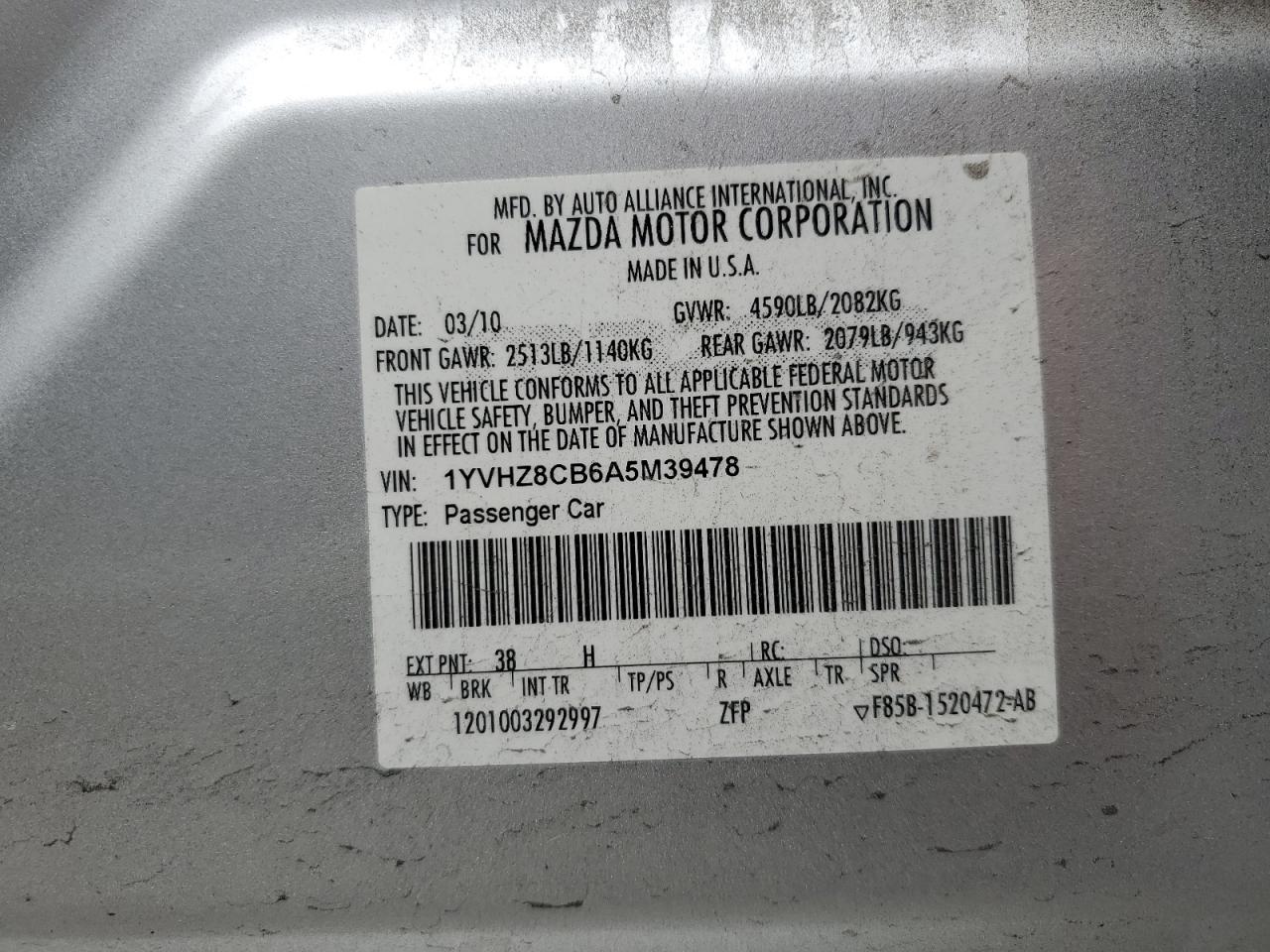 Колір СрібнийЦиліндри 6VIN 1YVHZ8CB6A5M39478Стан НевідомоУшкодження Передня або задня