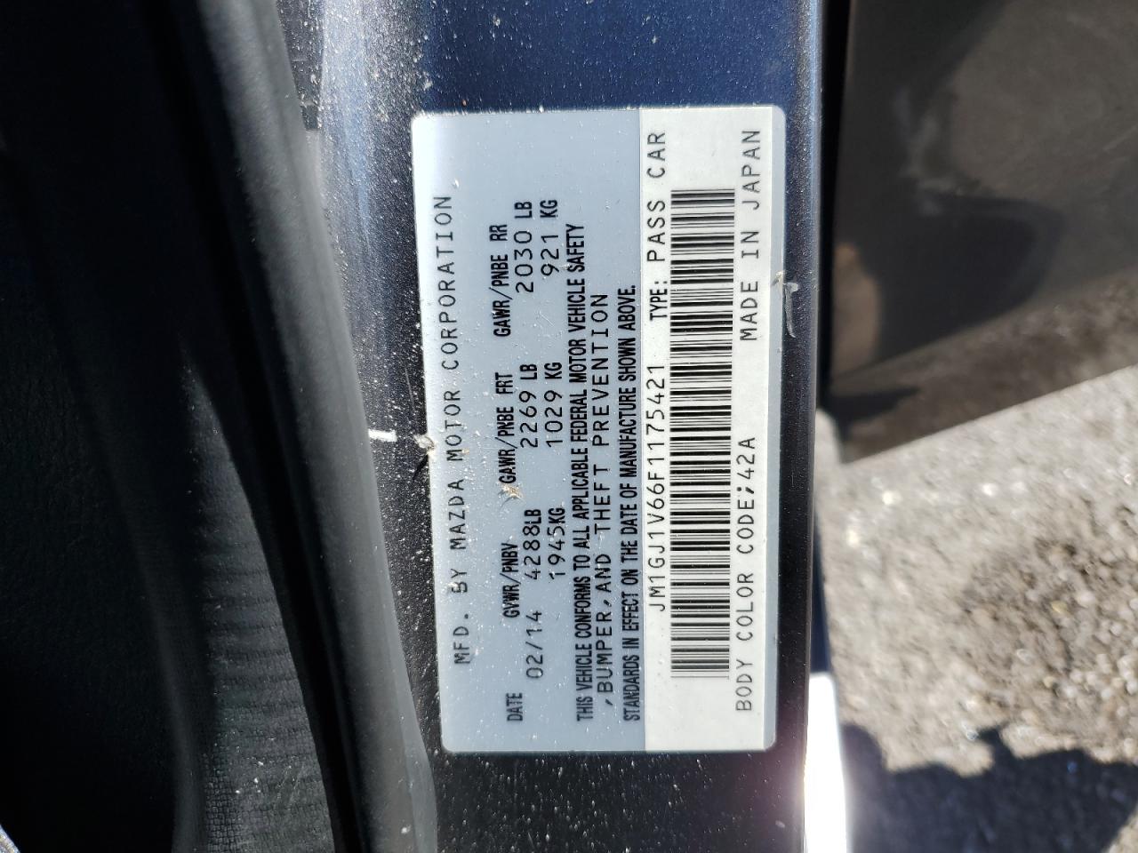MAZDA 6 2.5 2015 р.в., (JM1GJ1V66F1175421) з США