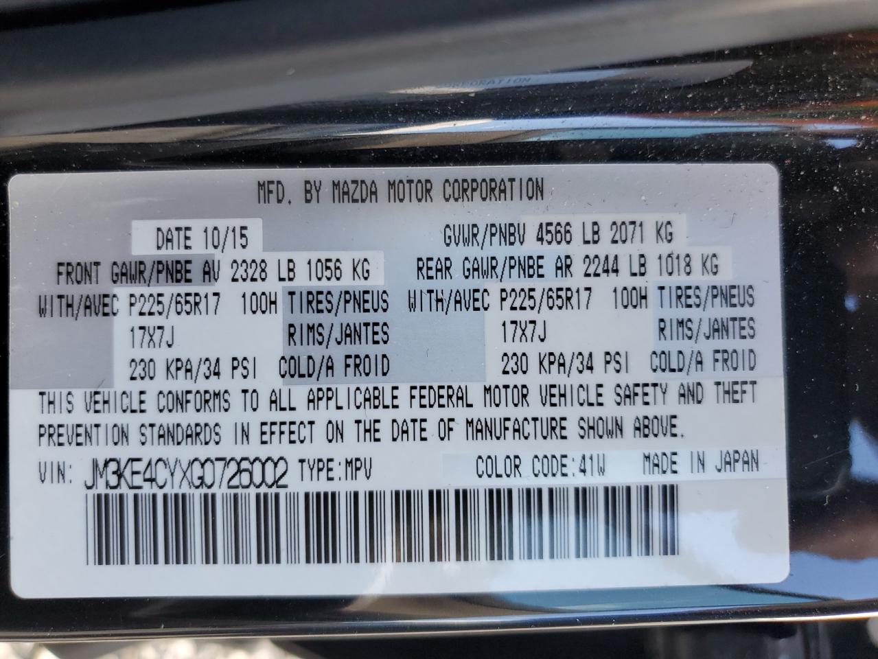 Колір ЧорнийЦиліндри 4Привід Повний привідVIN JM3KE4CYXG0726002Стан Заводиться та їде (перевірено)Ушкодження Низ