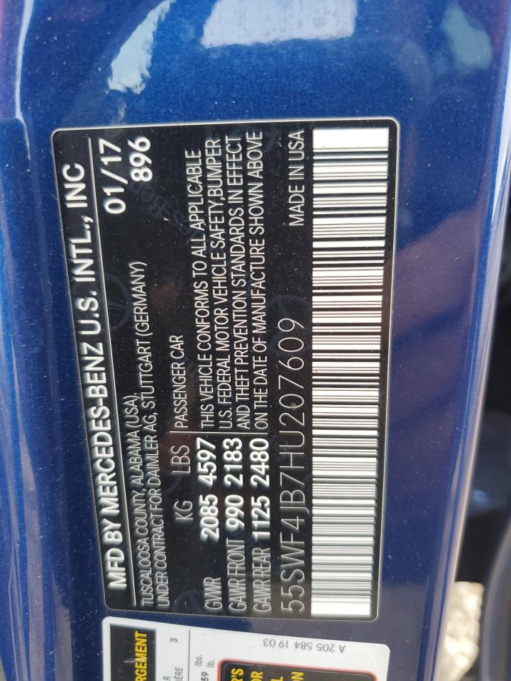 MERCEDES-BENZ C-CLASS 2.0 2017 р.в., Задній привід (55SWF4JB7HU207609) з США