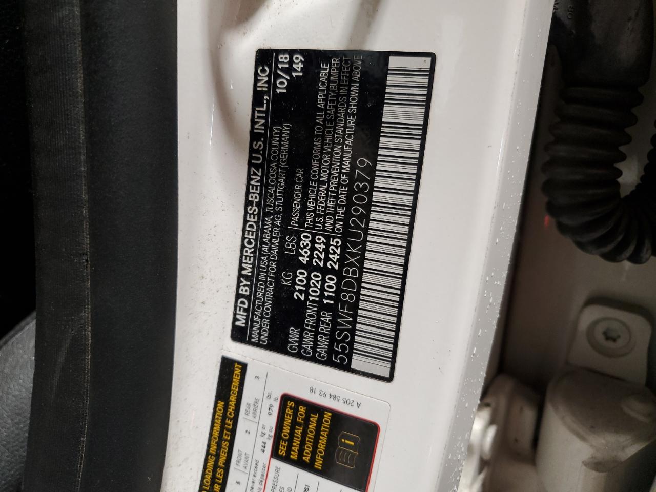 MERCEDES-BENZ C-CLASS 2.0 2019 р.в., Задній привід (55SWF8DBXKU290379) з США