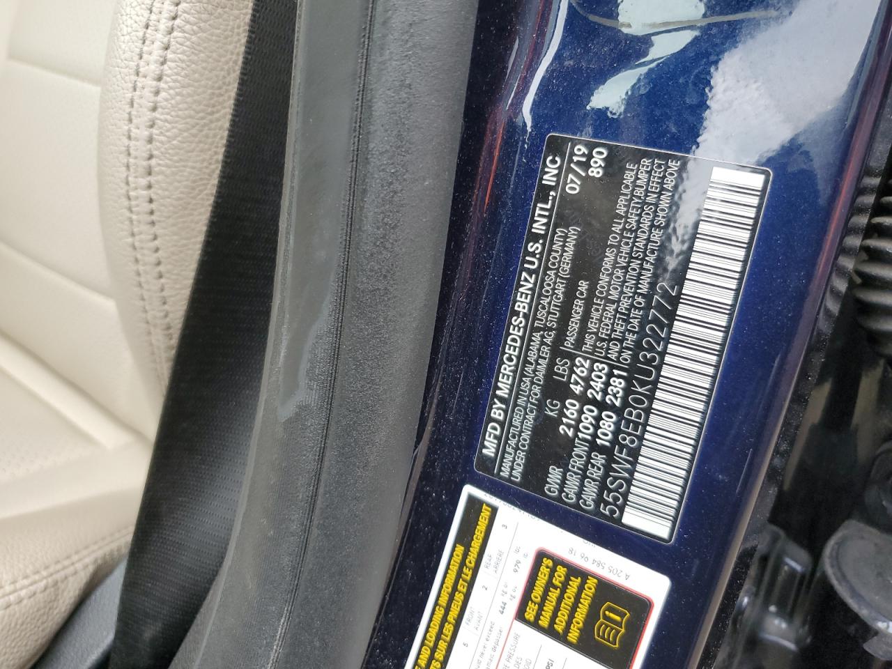 MERCEDES-BENZ C-CLASS 2.0 2019 р.в., Повний привід (55SWF8EB0KU322772) з США