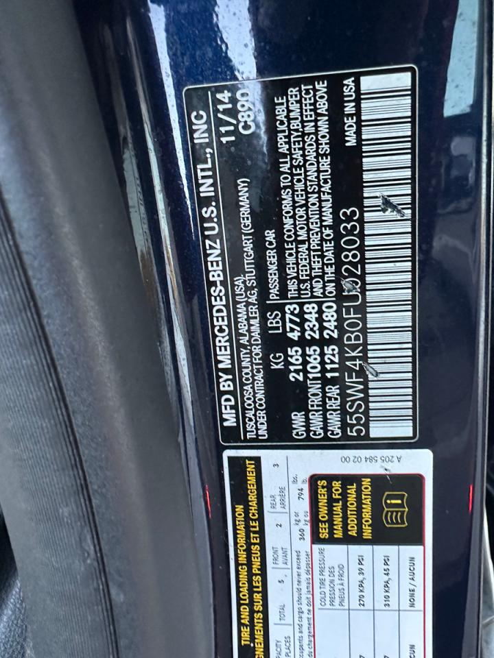 MERCEDES-BENZ C-CLASS 2.0 2015 р.в., Повний привід (55SWF4KB0FU028033) з США