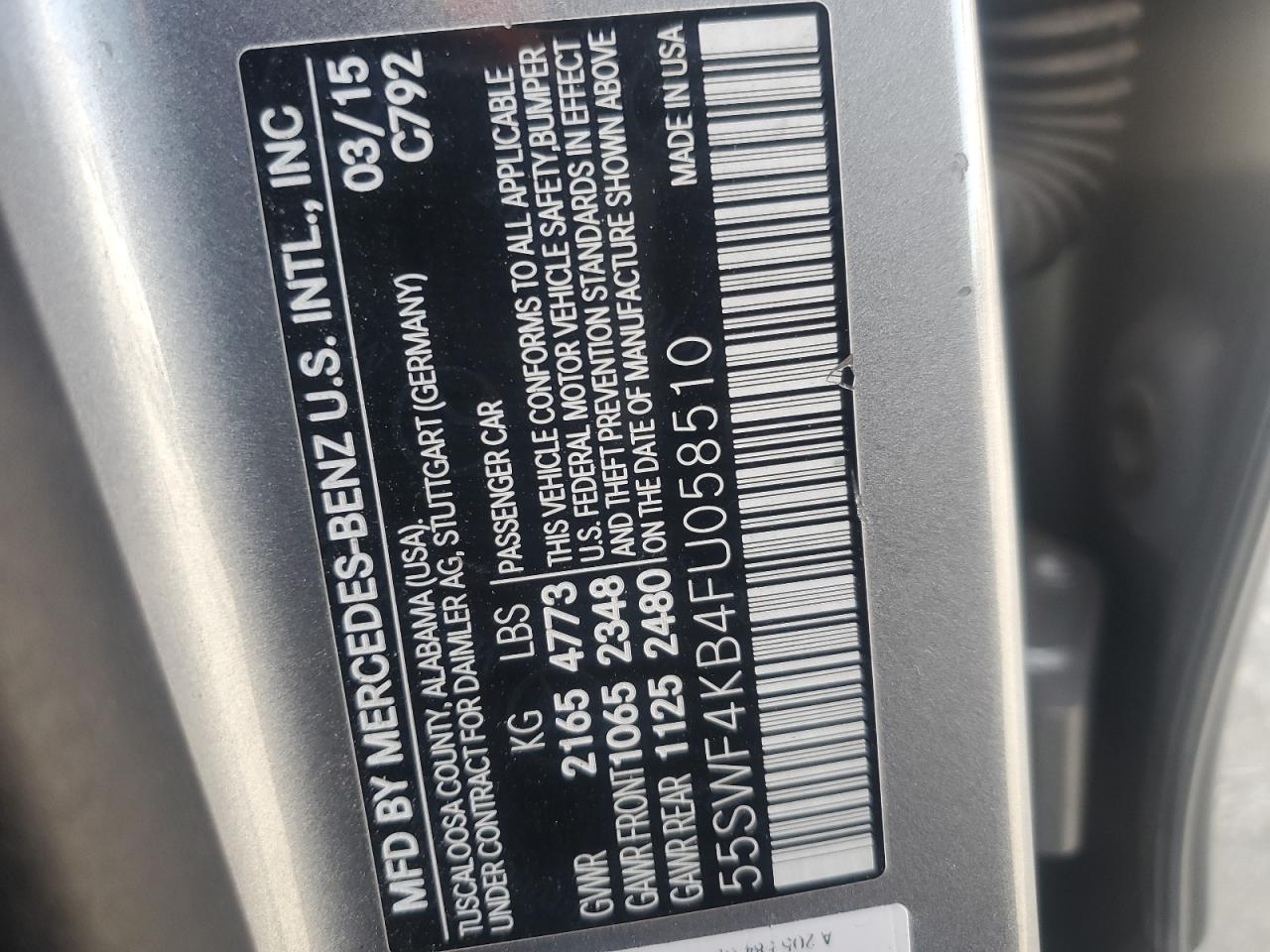 MERCEDES-BENZ C-CLASS 2.0 2015 р.в., Повний привід (55SWF4KB4FU058510) з США