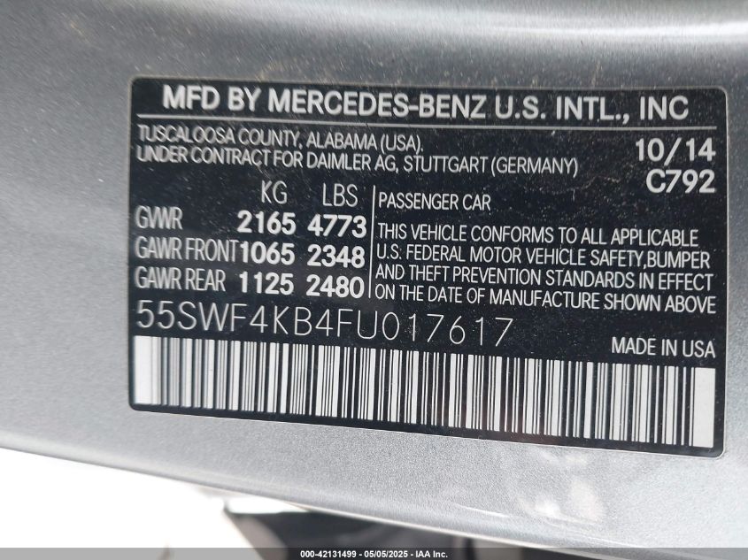 MERCEDES-BENZ C-CLASS 2.0 2015 р.в., Повний привід (55SWF4KB4FU017617) з США