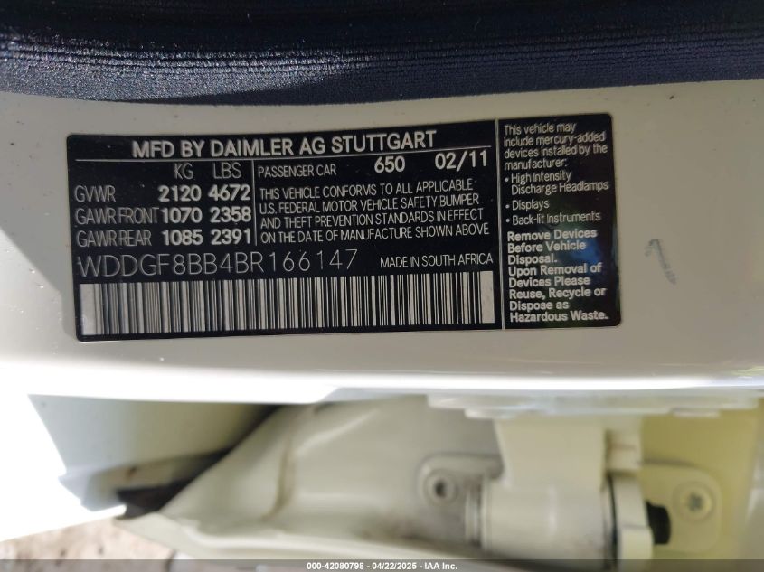 Колір БілийЦиліндри 6Привід Повний привідVIN WDDGF8BB4BR166147Стан ЗаводитьсяУшкодження Передня або задня