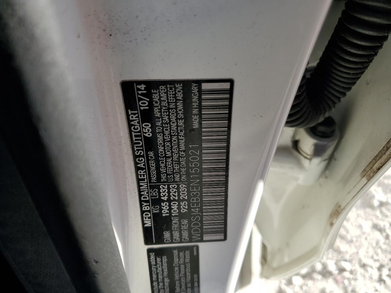 Колір БілийЦиліндри 4VIN WDDSJ4EB3EN155021Стан Заводиться та їде (перевірено)Ушкодження НезначніДата аукціону 2025-11-07