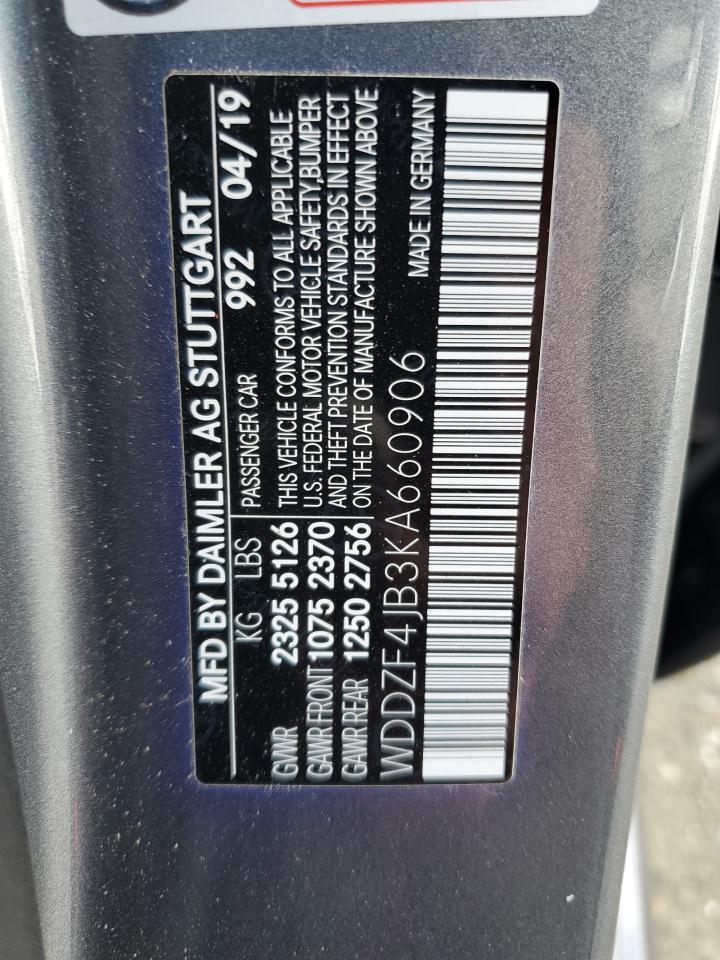 MERCEDES-BENZ E-CLASS 2.0 2019 р.в., Задній привід (WDDZF4JB3KA660906) з США