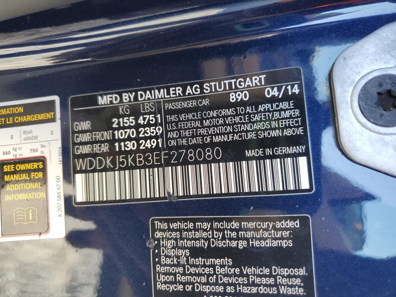 Колір СинійЦиліндри 6Привід Задній привідVIN WDDKJ5KB3EF278080Стан Заводиться та їде (перевірено)Ушкодження З боків
