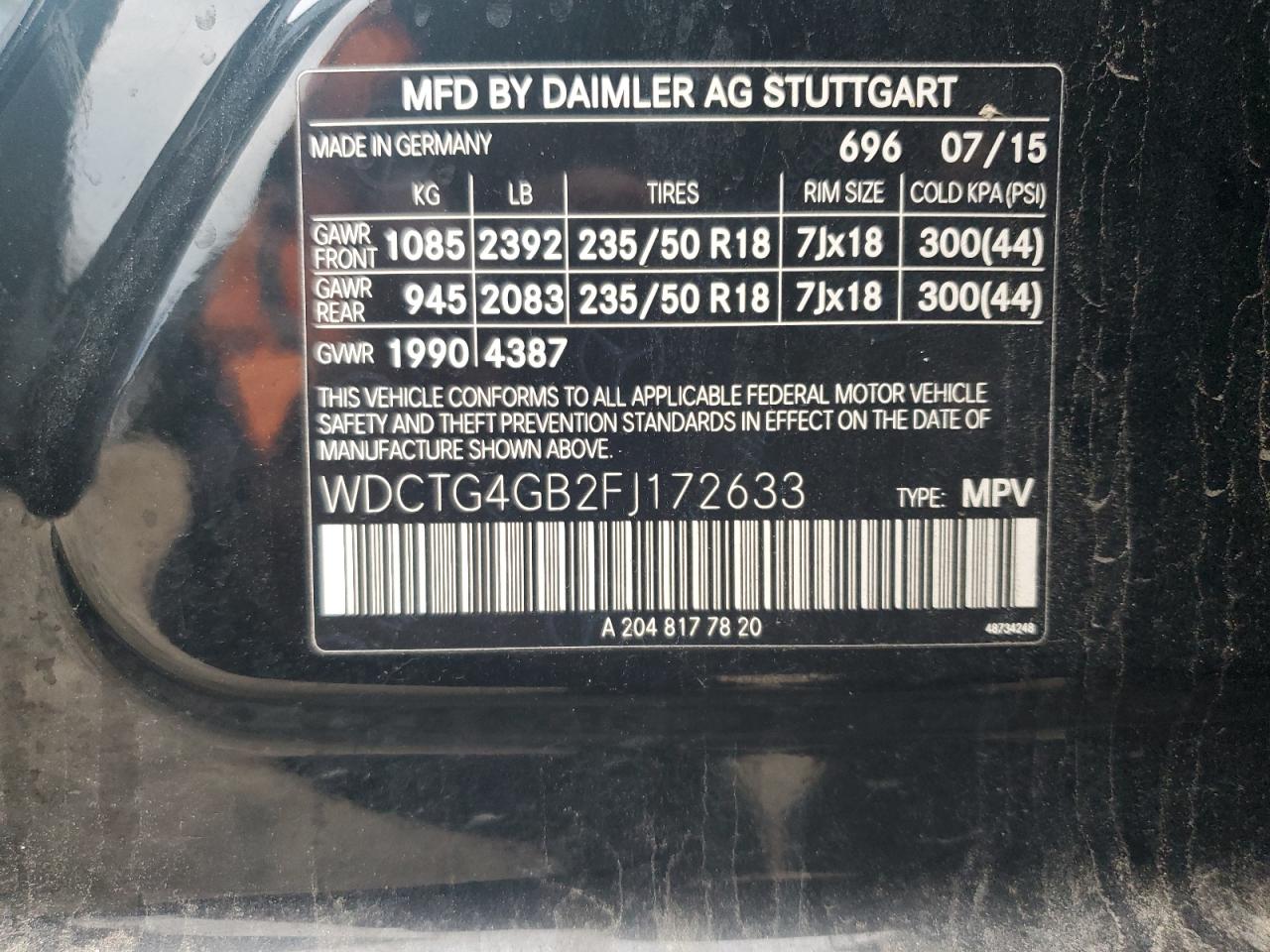 MERCEDES-BENZ GLA-CLASS 2.0 2015 р.в., Повний привід (WDCTG4GB2FJ172633) з США