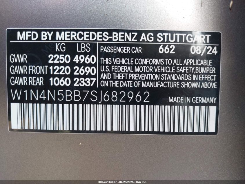 Колір СрібнийЦиліндри 4Привід Повний привідVIN W1N4N5BB7SJ682962Стан СтаціонарноУшкодження ВодаДата аукціону 2025-11-04