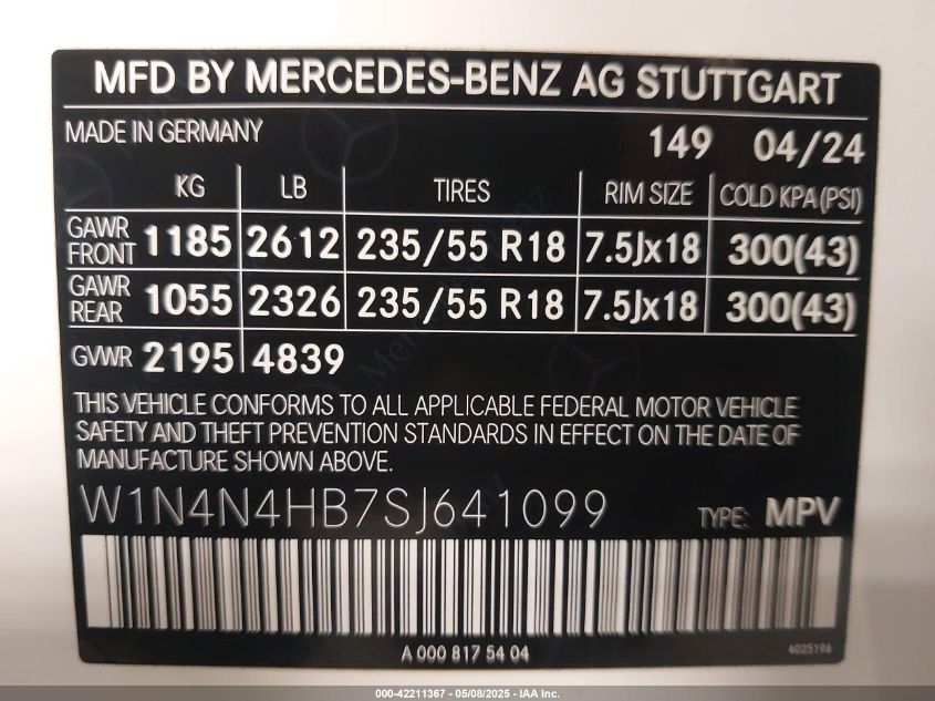 Колір БілийЦиліндри 4Привід Повний привідVIN W1N4N4HB7SJ641099Стан Заводиться та їде (перевірено)Ушкодження Права сторона