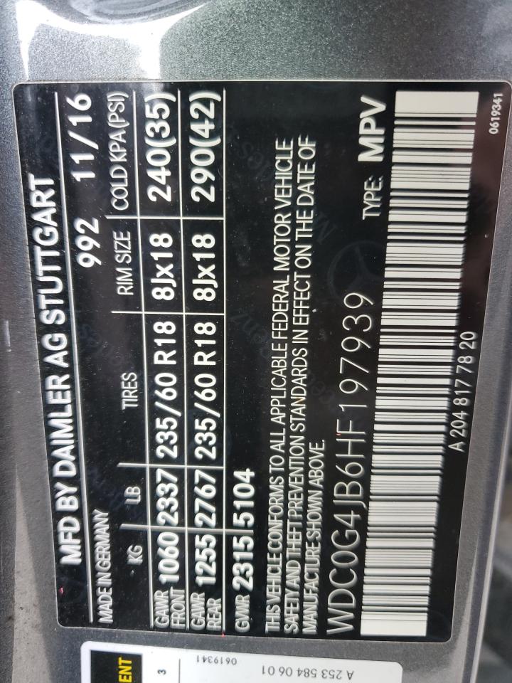 MERCEDES-BENZ GLC-CLASS 2.0 2017 р.в., Задній привід (WDC0G4JB6HF197939) з США