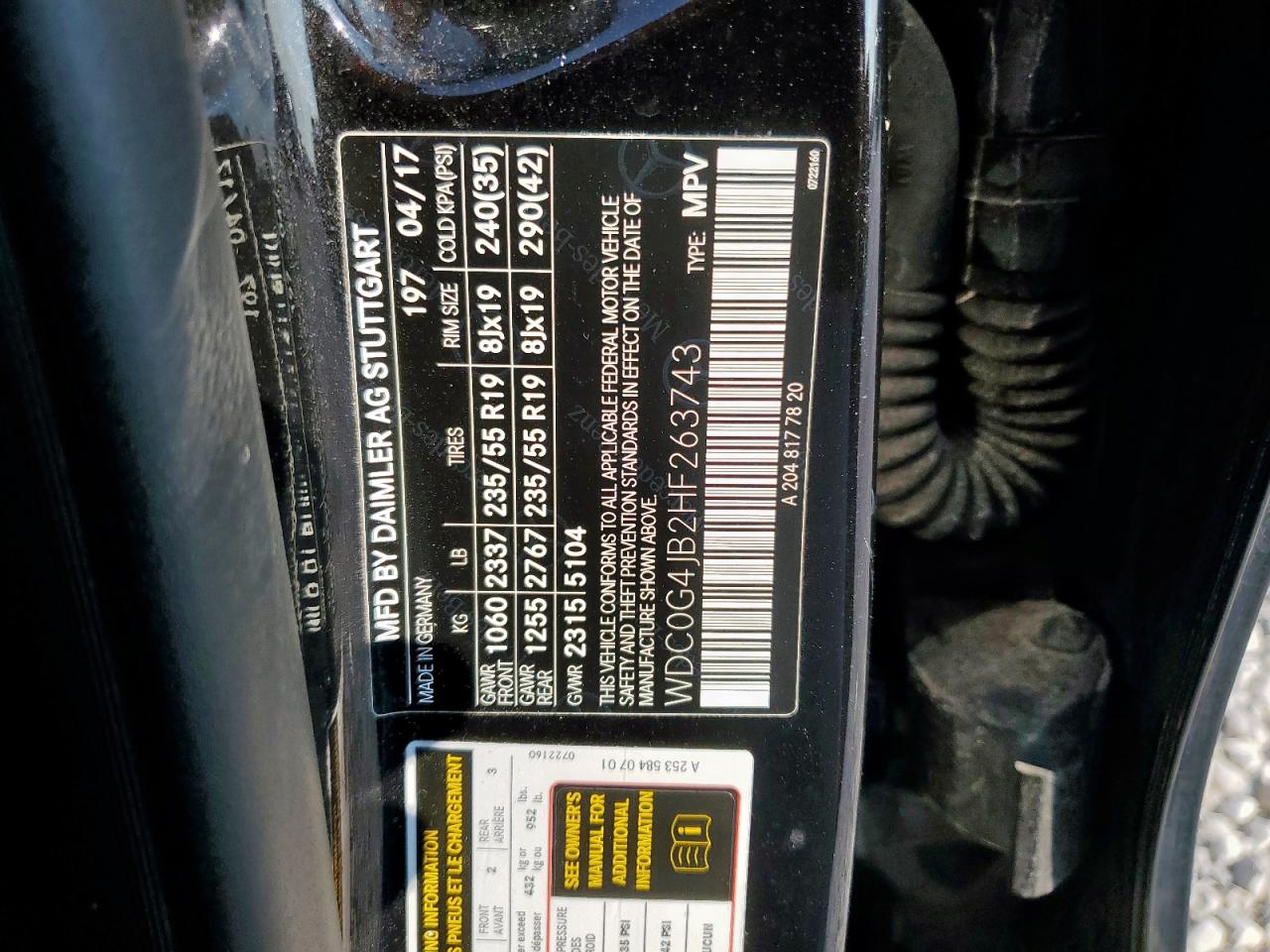 Колір ЧорнийЦиліндри 4Привід Задній привідVIN WDC0G4JB2HF263743Стан Заводиться та їде (перевірено)Ушкодження Передня або задня
