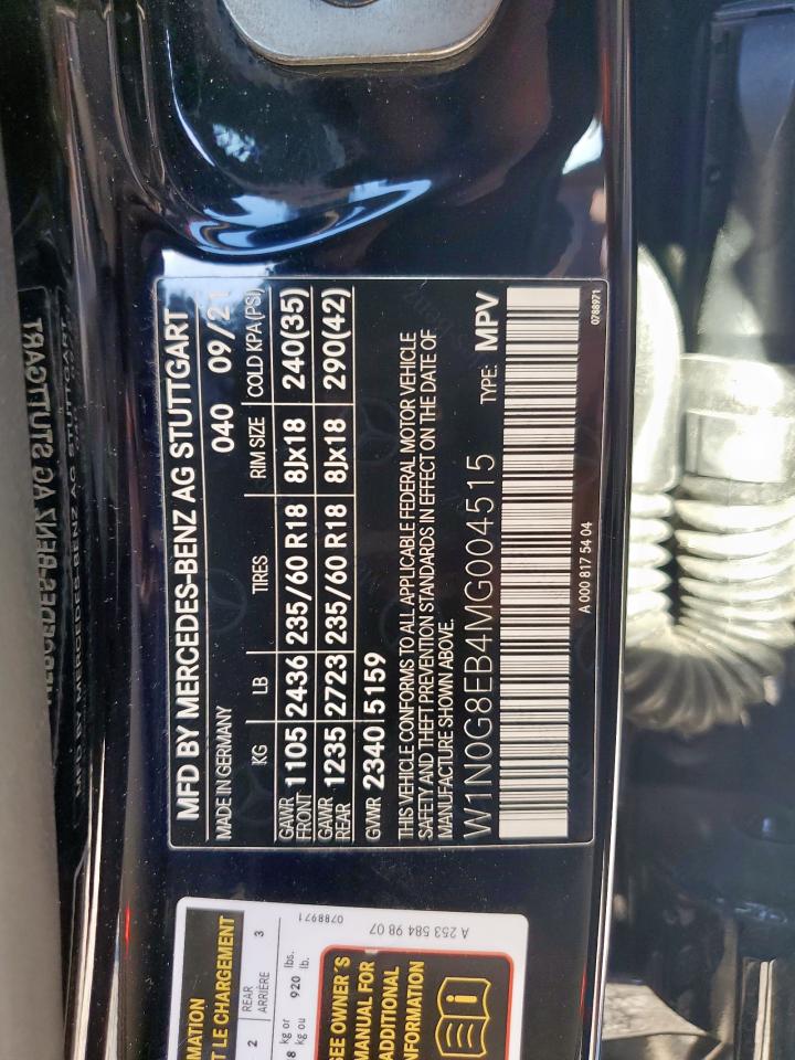 MERCEDES-BENZ GLC-CLASS 2.0 2021 р.в., Повний привід (W1N0G8EB4MG004515) з США