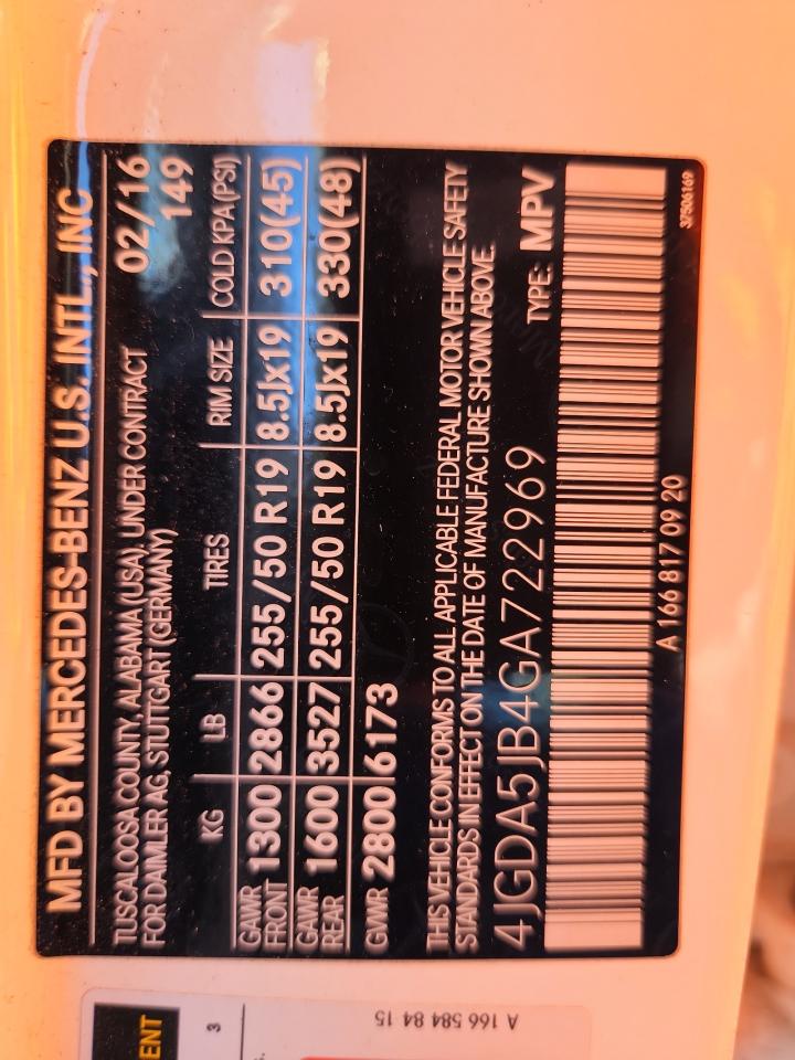 MERCEDES-BENZ GLE-CLASS 3.5 2016 р.в., Задній привід (4JGDA5JB4GA722969) з США