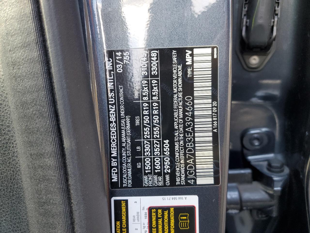 MERCEDES-BENZ M-CLASS 4.6 2014 р.в., Повний привід (4JGDA7DB3EA394660) з США