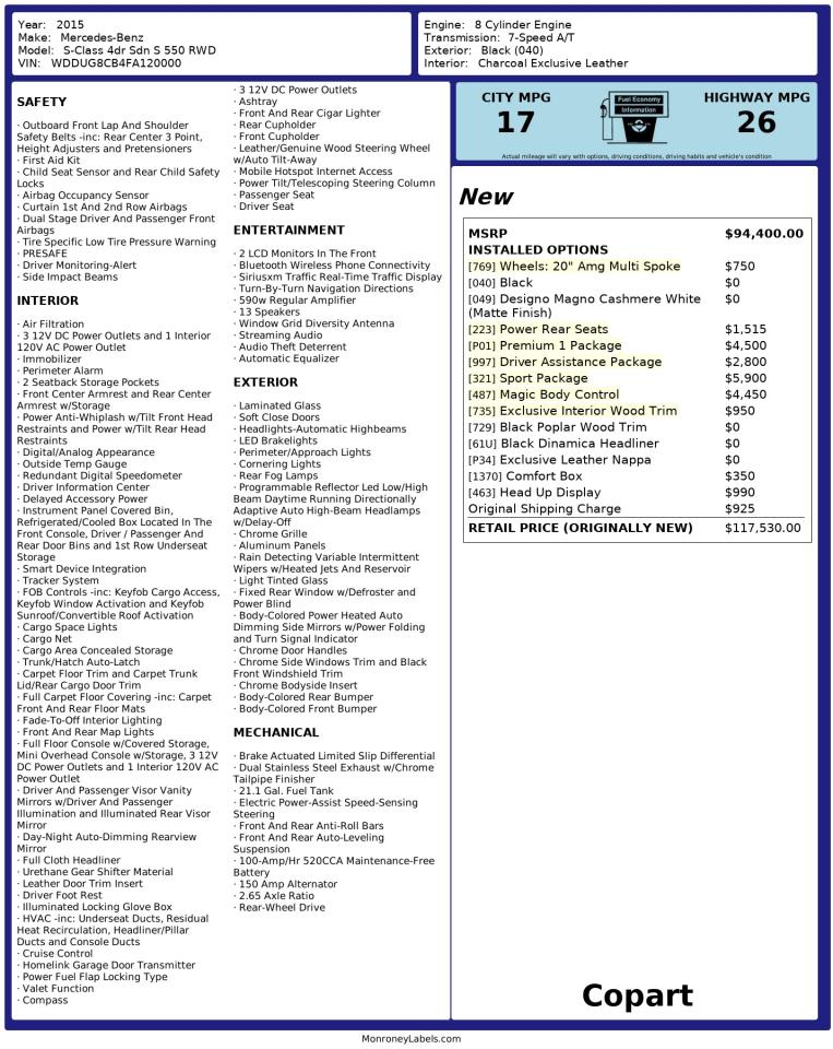 MERCEDES-BENZ S-CLASS 4.6 2015 р.в., Задній привід (WDDUG8CB4FA120000) з США