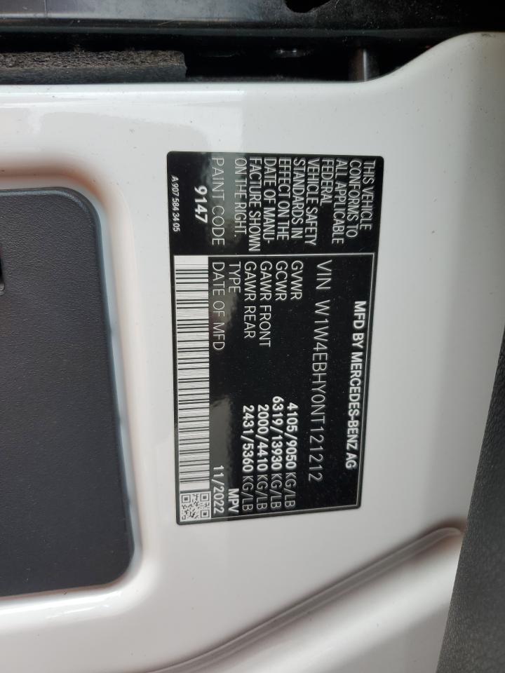 MERCEDES-BENZ SPRINTER 3.0 2022 р.в., Задній привід (W1W4EBHY0NT121212) з США