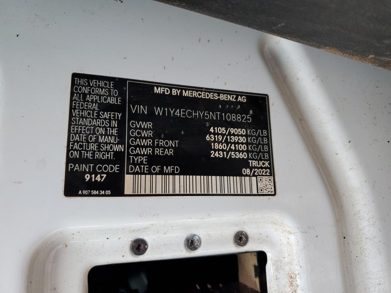 MERCEDES-BENZ SPRINTER 3.0 2022 р.в., Задній привід (W1Y4ECHY5NT108825) з США