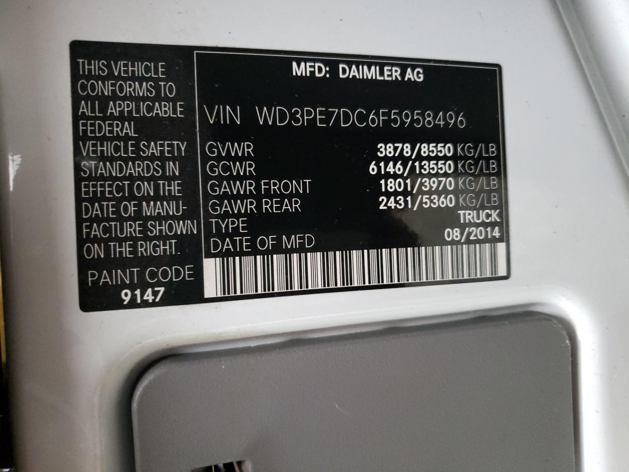 MERCEDES-BENZ SPRINTER 2.1 2015 р.в., Задній привід (WD3PE7DC6F5958496) з США