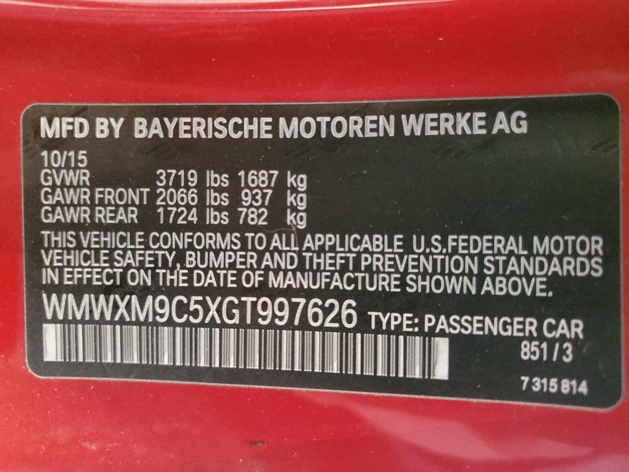 Колір ЧервонийЦиліндри 4VIN WMWXM9C5XGT997626Стан Заводиться та їде (перевірено)Ушкодження Передня або задня
