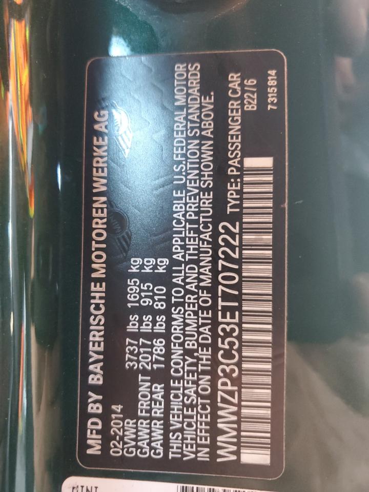 Колір ЗеленийЦиліндри 4VIN WMWZP3C53ET707222Стан ЗаводитьсяУшкодження Передня або задня