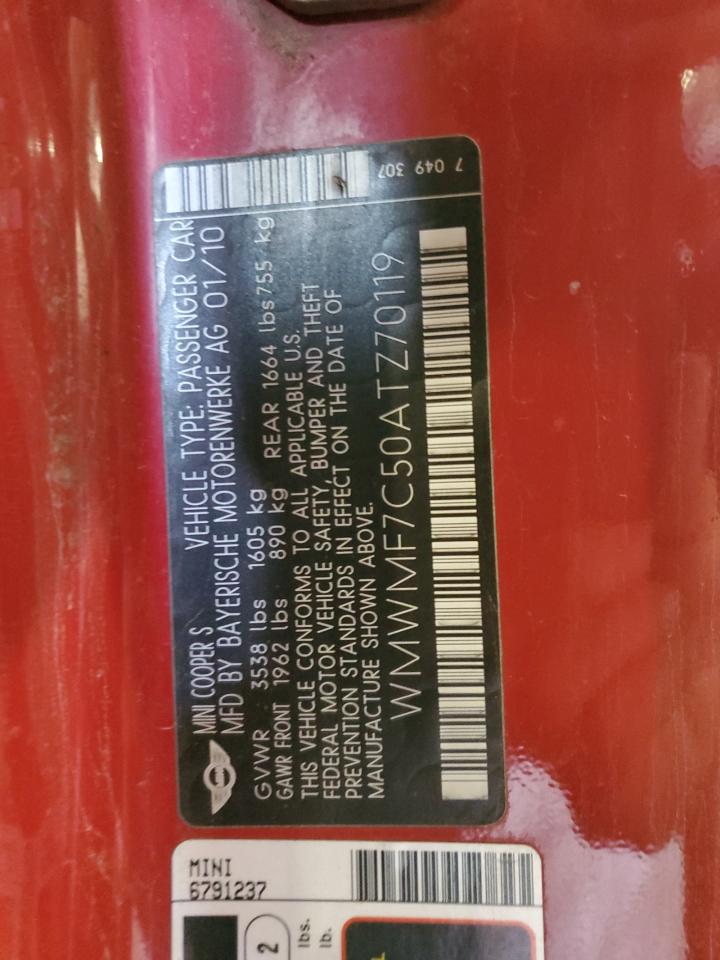 MINI COOPER 1.6 2010 р.в., (WMWMF7C50ATZ70119) з США