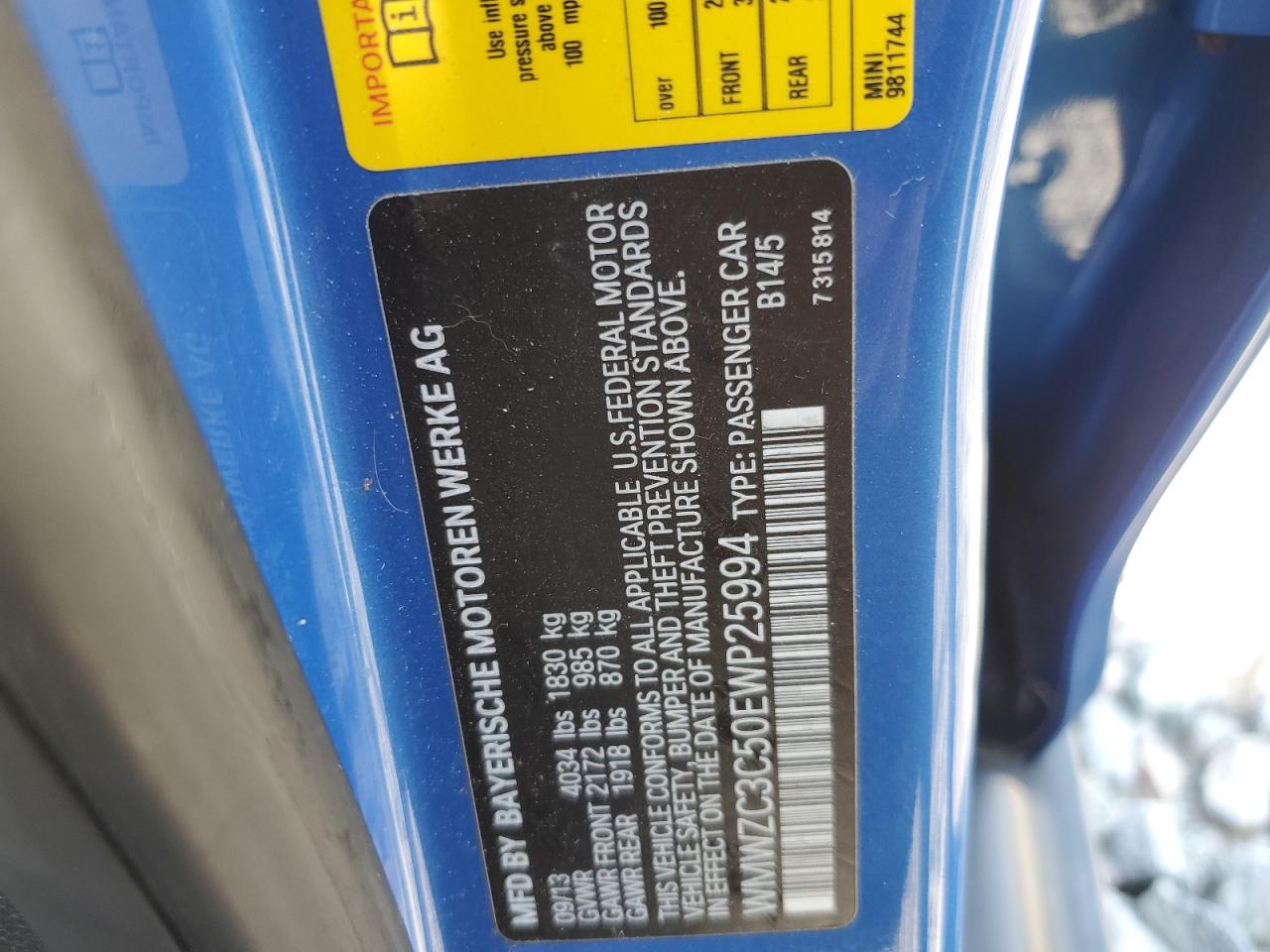 Колір СинійЦиліндри 4VIN WMWZC3C50EWP25994Стан Заводиться та їде (перевірено)Ушкодження Передня або задня