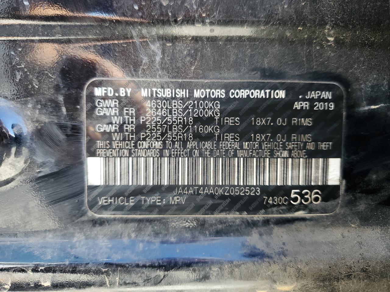 MITSUBISHI ECLIPSE 1.5 2019 р.в., Повний привід (JA4AT4AA0KZ052523) з США