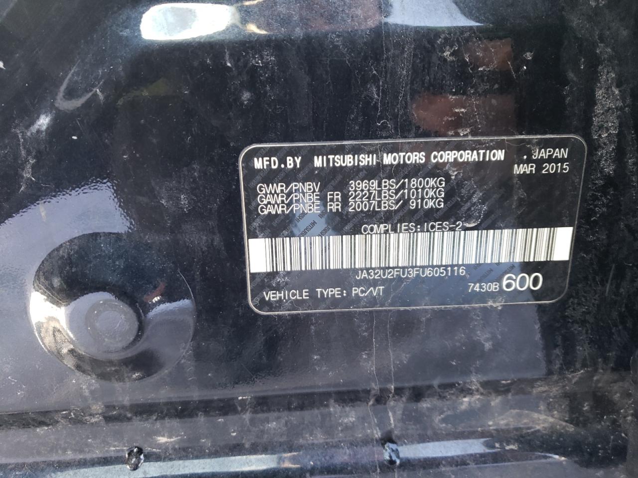 MITSUBISHI LANCER 2.0 2015 р.в., (JA32U2FU3FU605116) з США