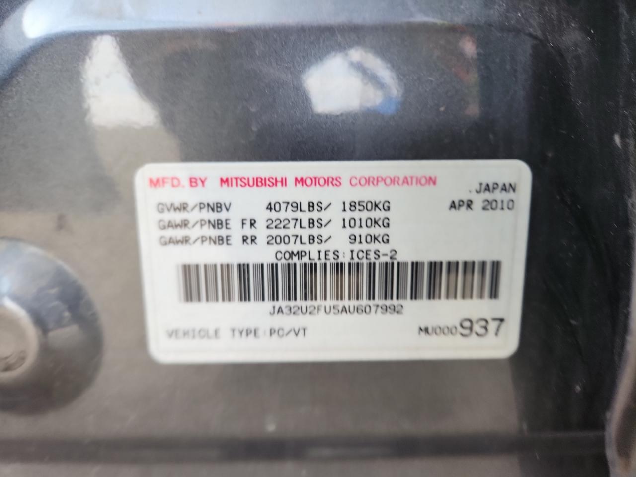 MITSUBISHI LANCER 2.0 2010 р.в., (JA32U2FU5AU607992) з США