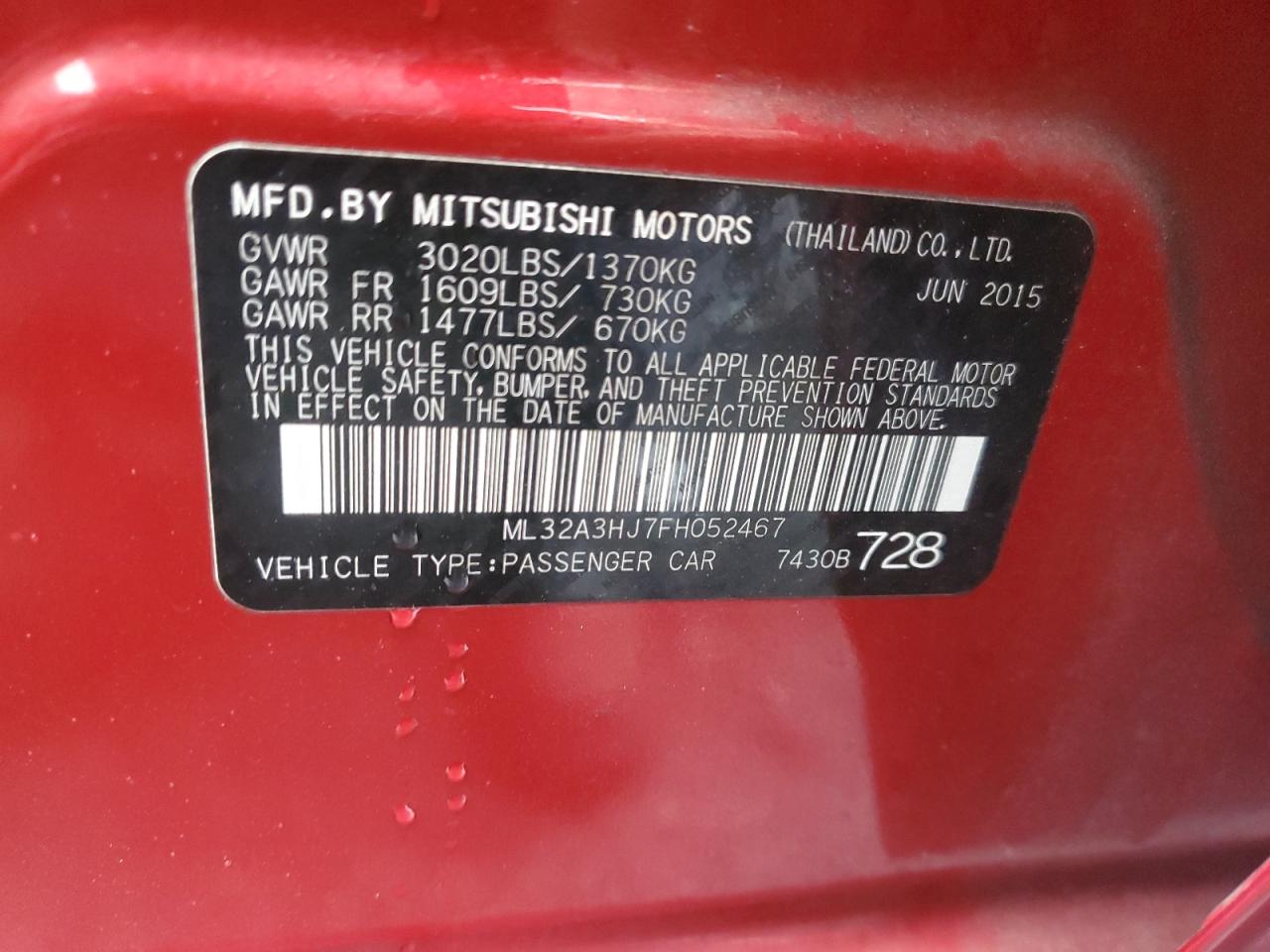 MITSUBISHI MIRAGE 1.2 2015 р.в., (ML32A3HJ7FH052467) з США