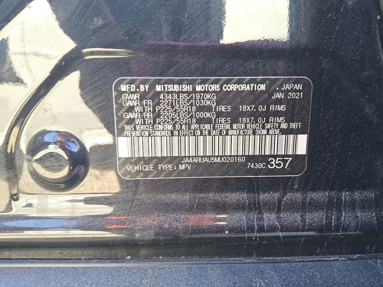 MITSUBISHI OUTLANDER 2.0 2021 р.в., Повний привід (JA4ARUAU5MU020160) з США