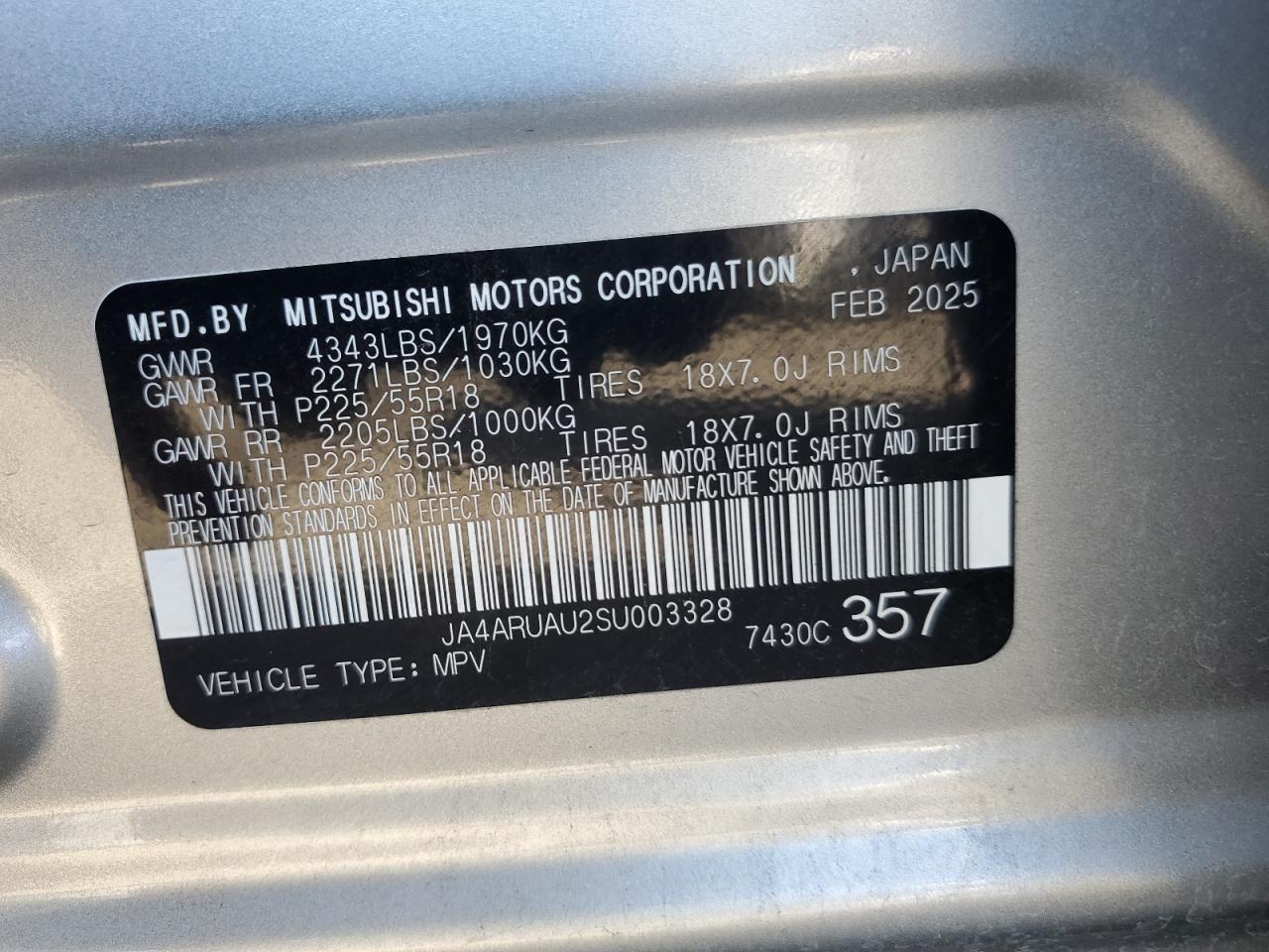 MITSUBISHI OUTLANDER 2.0 2025 р.в., Повний привід (JA4ARUAU2SU003328) з США