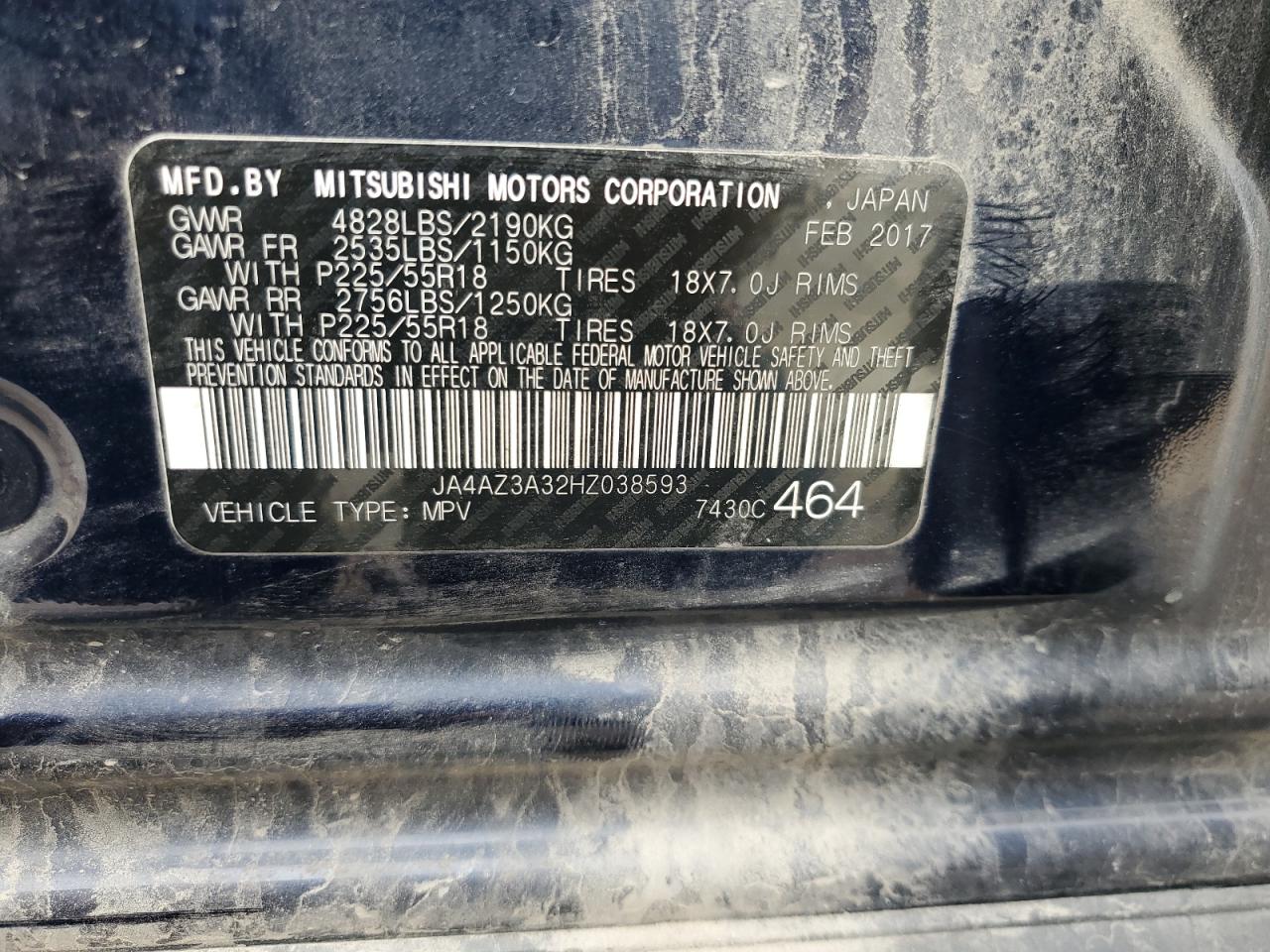 MITSUBISHI OUTLANDER 2.4 2017 р.в., Повний привід (JA4AZ3A32HZ038593) з США