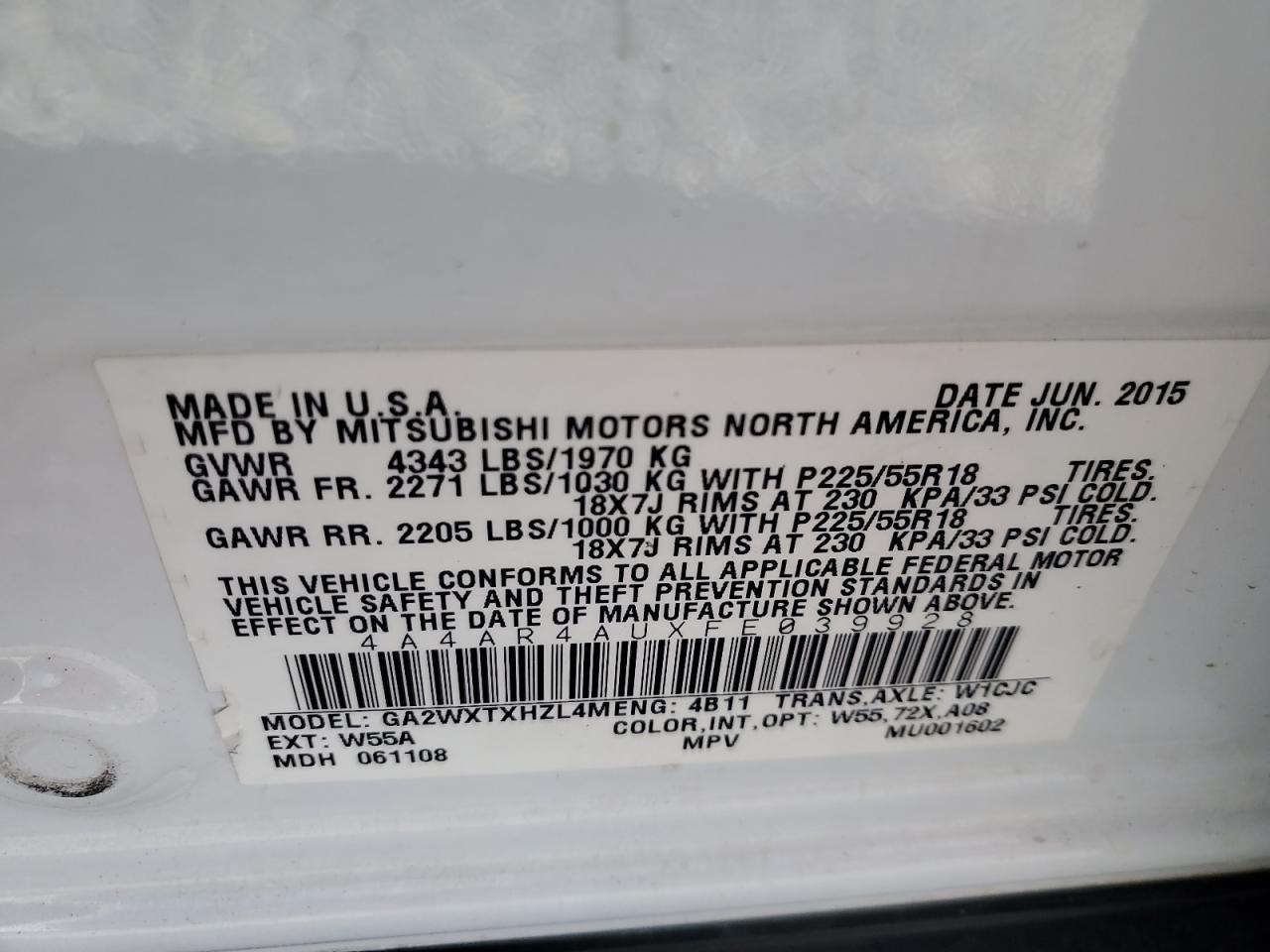 MITSUBISHI OUTLANDER 2.0 2015 р.в., Повний привід (4A4AR4AUXFE039928) з США