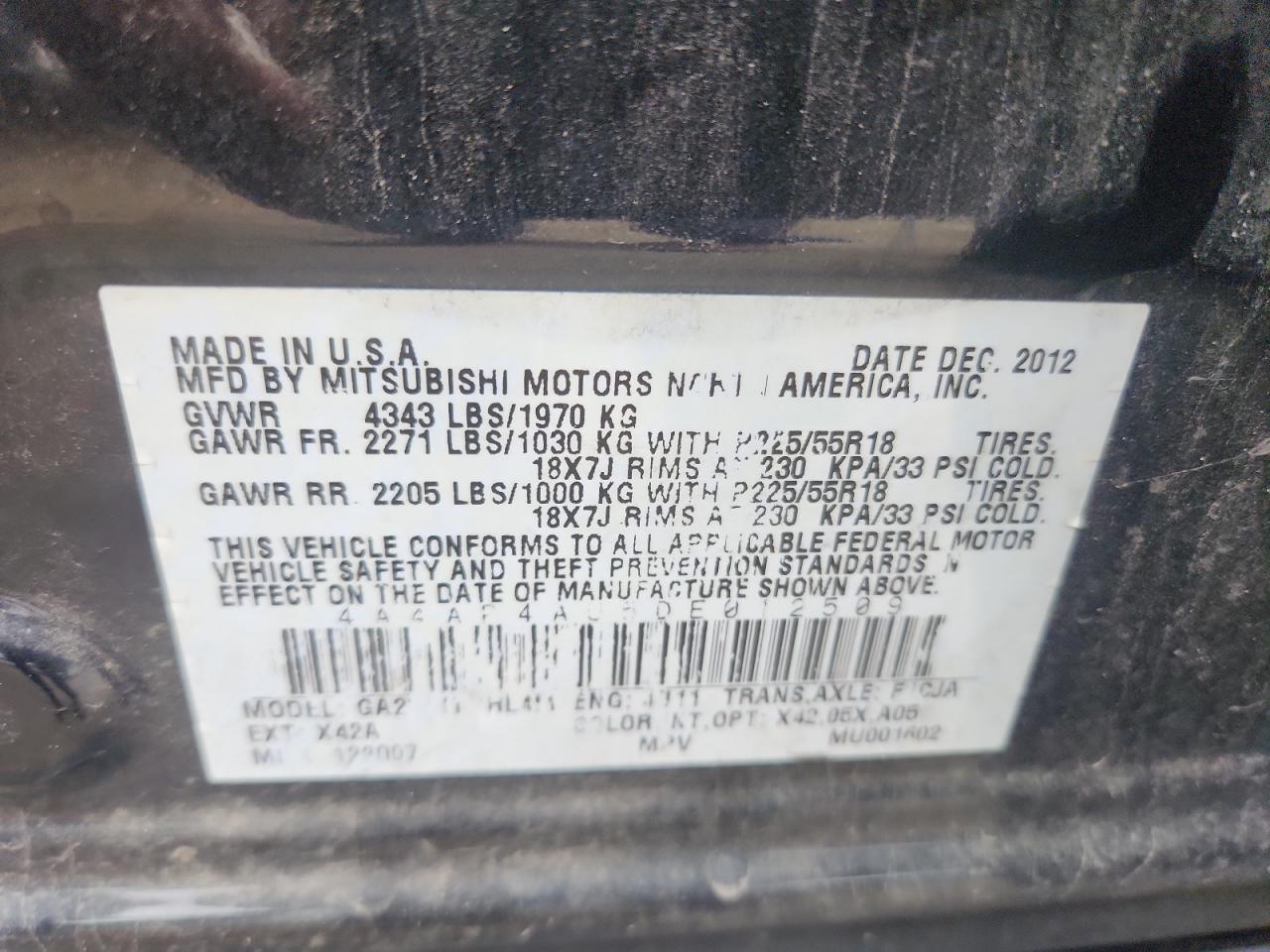 MITSUBISHI OUTLANDER 2.0 2013 р.в., (4A4AP4AU5DE012509) з США