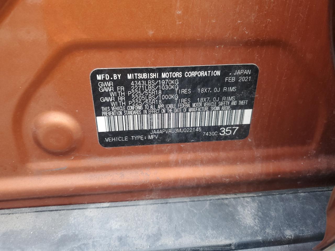 MITSUBISHI OUTLANDER 2.0 2021 р.в., (JA4APVAU3MU022145) з США