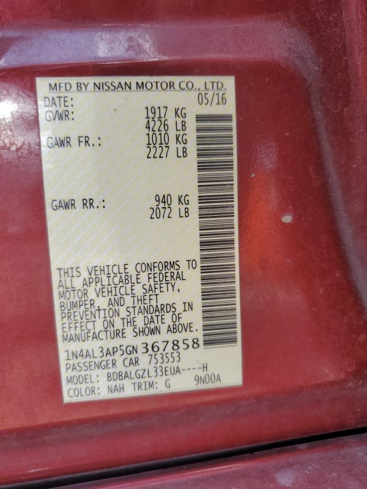 NISSAN ALTIMA 2.5 2016 р.в., (1N4AL3AP5GN367858) з США