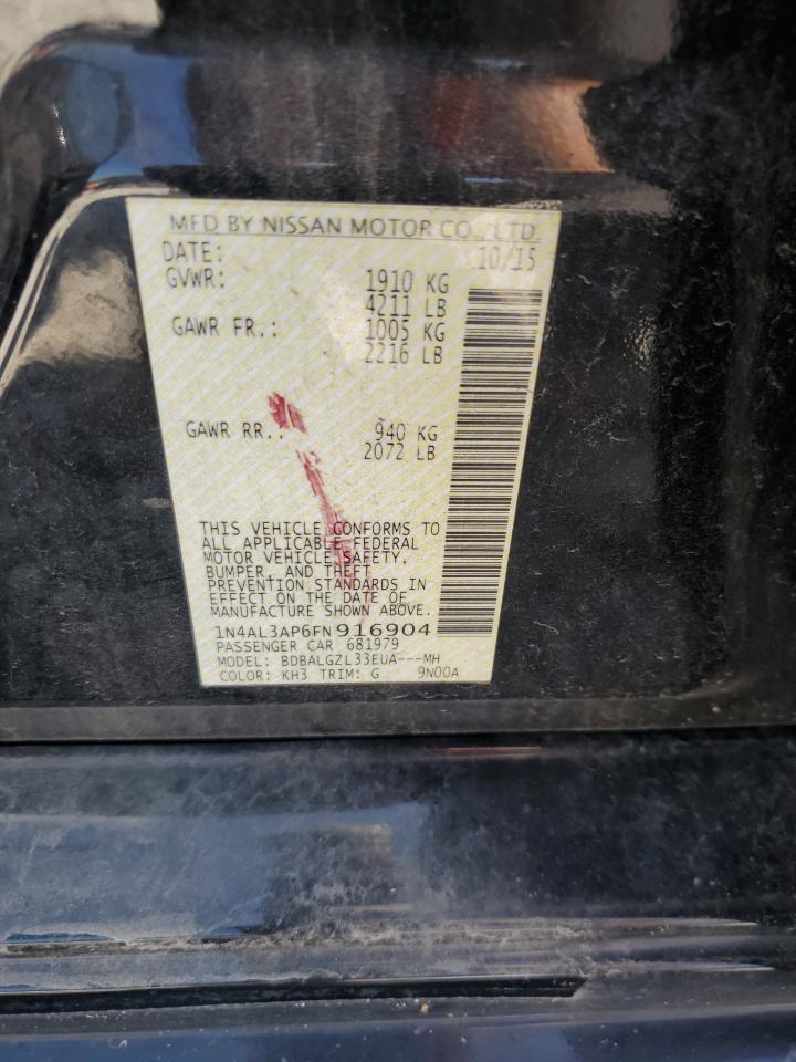 Колір ЧорнийЦиліндри 4VIN 1N4AL3AP6FN916904Стан Заводиться та їде (перевірено)Ушкодження Передня або задняДата аукціону 2025-11-03