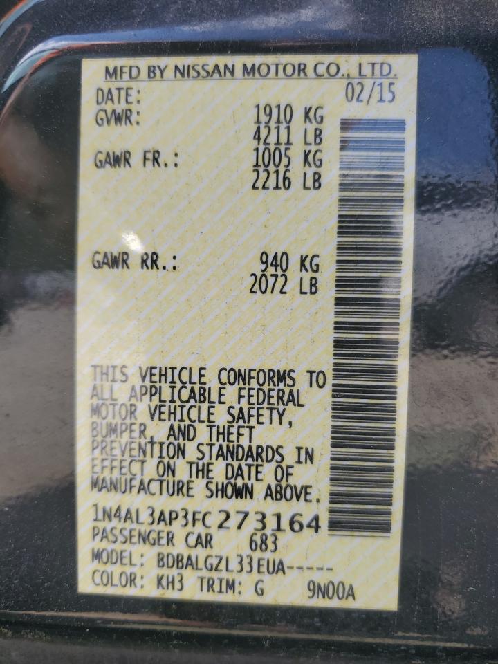 NISSAN ALTIMA 2.5 2015 р.в., (1N4AL3AP3FC273164) з США