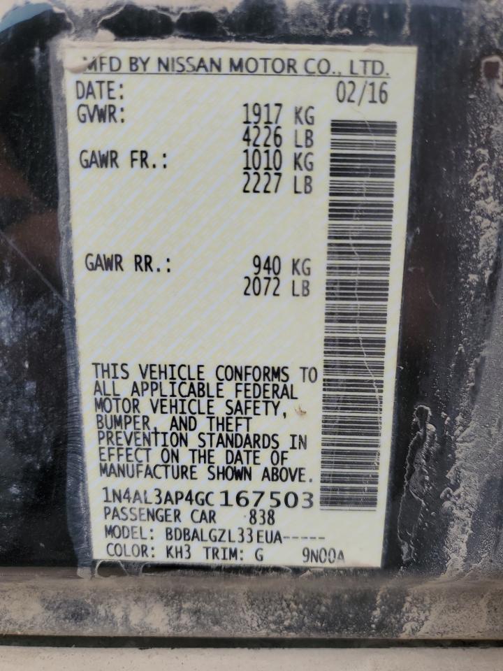NISSAN ALTIMA 2.5 2016 р.в., (1N4AL3AP4GC167503) з США